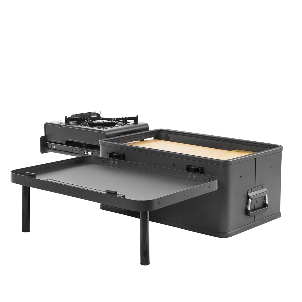 Keine aufwändige Installation nötig: Box aufklappen, Tischbeine anbringen, Kocher anschließen – fertig. Perfekt für kürzere Reisen, Wochenenden oder Situationen, in denen Flexibilität zählt.