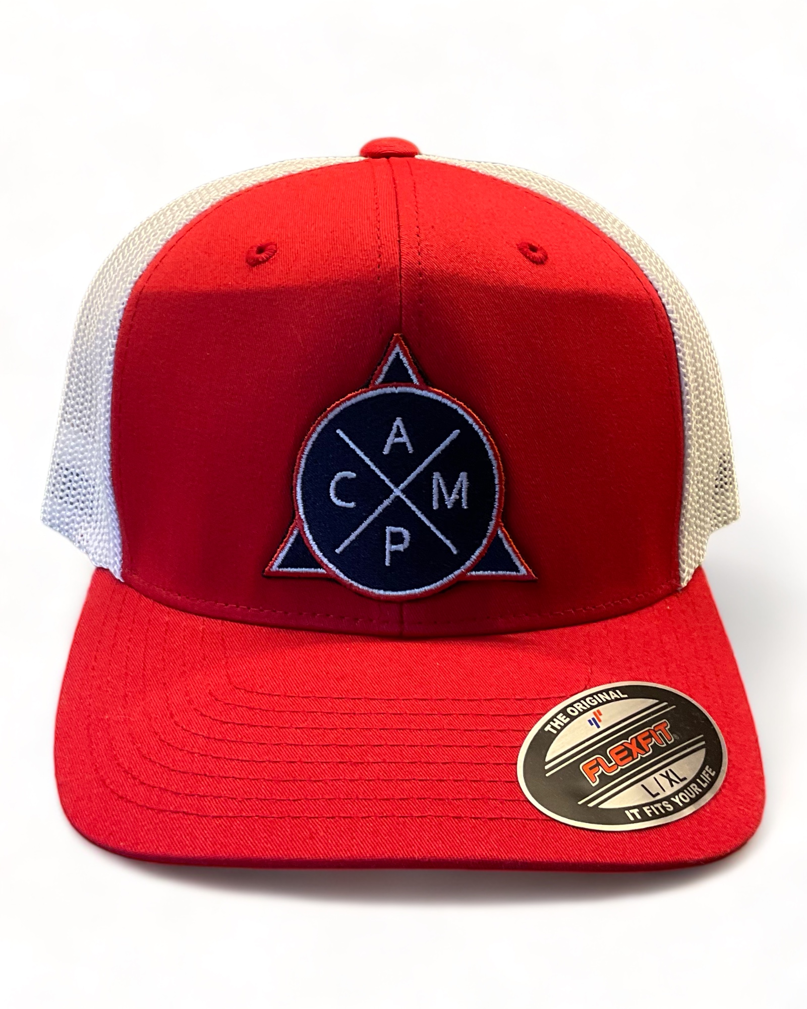 Premium Campingkleidung & Campingausrüstung "CAMP - Flexfit Camping Cap in Rot / Weiß"