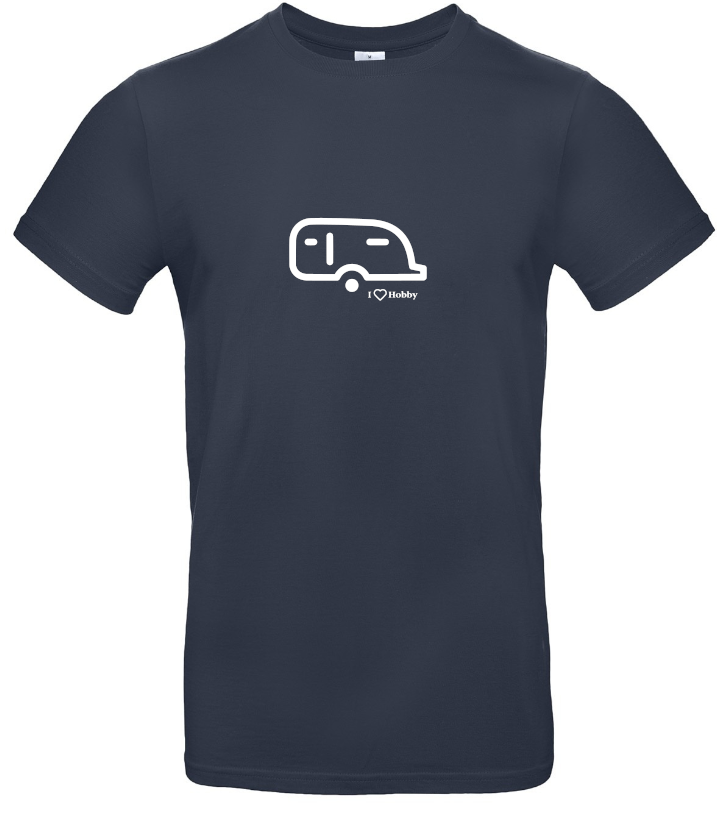 - Wohnwagen-Motiv auf der Brust: Ein stilisiertes Hobby Wohnwagen-Design, das sofort ins Auge fällt.