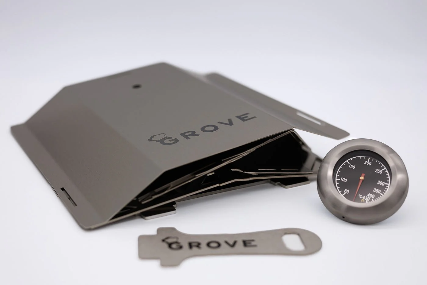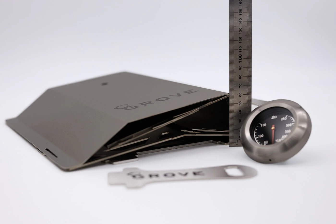 Grove denkt das Koch-Setup als System: Gasgrill-Bodenplatte, Pizzaschieber, StaySafe-Rahmen für glatte/3-Streben-Topfauflagen, Transporttasche und mehr. Alles ist darauf ausgelegt, den HORST sicherer, vielseitiger und noch praktischer zu machen.