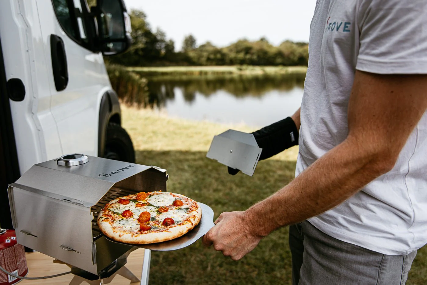 Ob Van, Kastenwagen, Wohnwagen oder Wohnmobil: Der HORST funktioniert auf den meisten Campingkochern – auch versenkten Gaskochfeldern. Für maximale Stabilität auf glatten Auflagen empfiehlt Grove den StaySafe-Rahmen. Ergebnis: Sichere Handhabung, verlässliche Temperaturen, reproduzierbare Ergebnisse – kurz: Ofen-Feeling unterwegs.