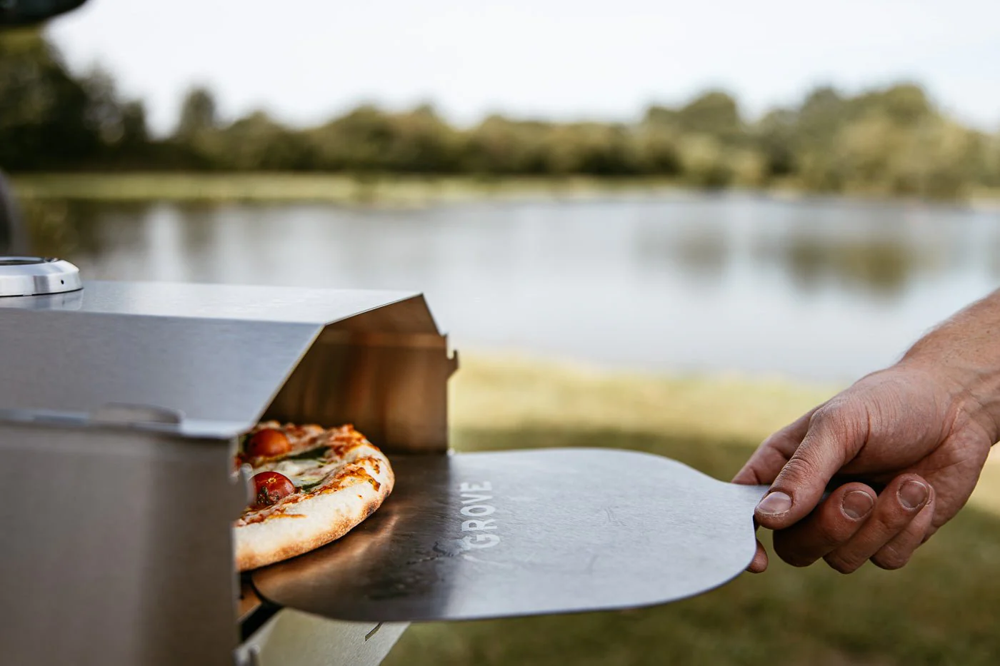 Premium Campingkleidung & Campingausrüstung "GROVE Pizzaschieber – Edelstahl, 322×230 mm, spülmaschinengeeignet"