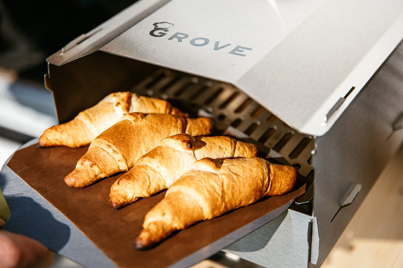 Grove denkt das Koch-Setup als System: Gasgrill-Bodenplatte, Pizzaschieber, StaySafe-Rahmen für glatte/3-Streben-Topfauflagen, Transporttasche und mehr. Alles ist darauf ausgelegt, den HORST sicherer, vielseitiger und noch praktischer zu machen.