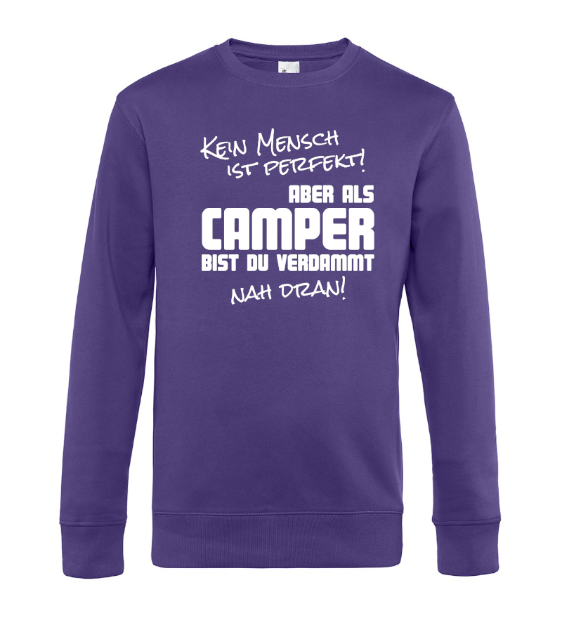 Premium Campingkleidung & Campingausrüstung "Kein Mensch ist perfekt! Camping Sweatshirt / Pullover (Unisex)"