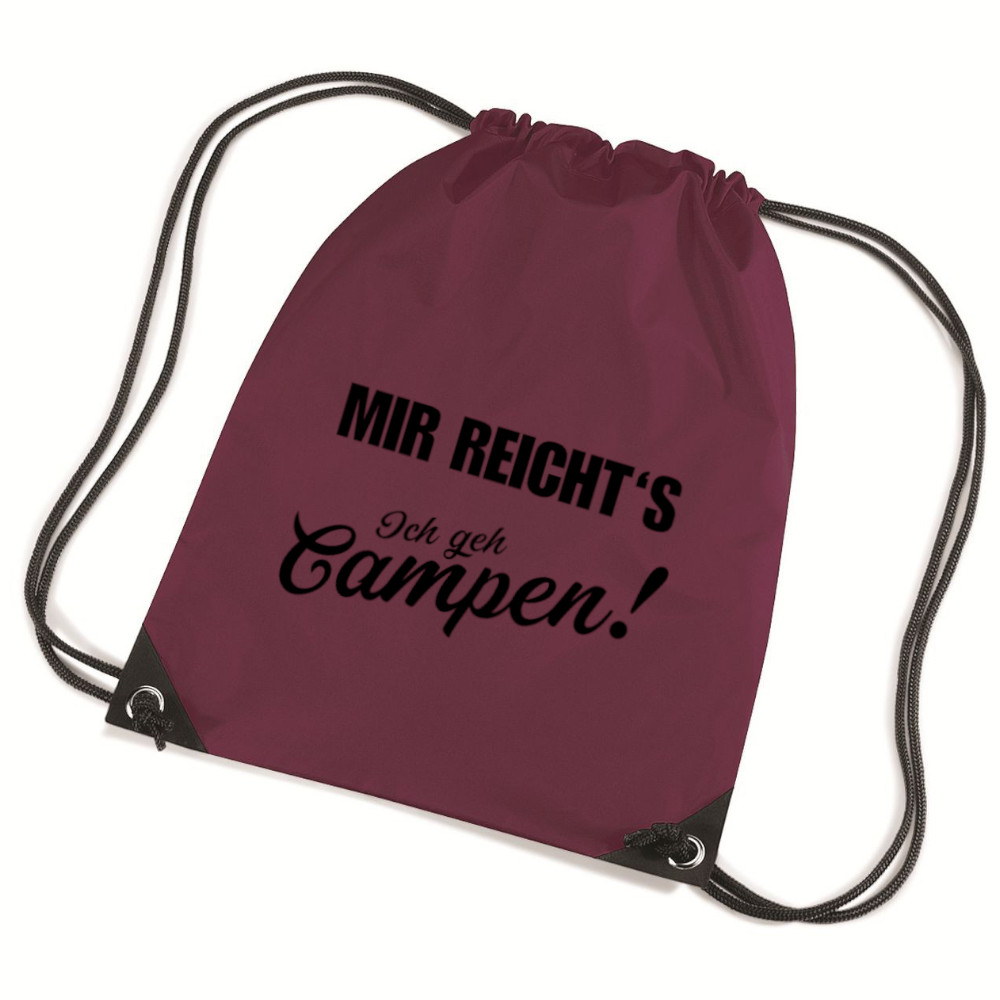 „Mir reicht’s – Ich geh campen“ – dieser Spruch ist nicht nur witzig, sondern auch ein Ausdruck deiner Lebenseinstellung. Mit diesem Rucksack machst du sofort klar, dass du den Alltag gerne mal hinter dir lässt, um die kleinen und großen Abenteuer des Campinglebens zu genießen. Ein echter Hingucker, der garantiert für Lacher sorgt!